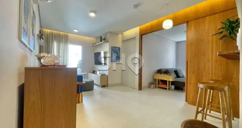 Com 2 dormitórios, sala com sacada, cozinha americana, banheiro social e de serviço, 1 vaga de garagem, totalmente reformado e repletos de armários planejados.