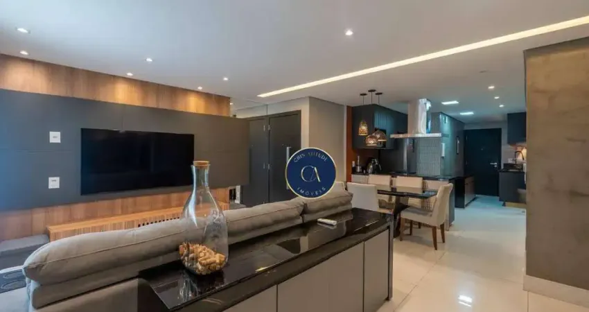 O apartamento possui 80 m² e foi totalmente reformado com acabamento premium, apresentando um projeto moderno e funcional. São dois dormitórios, sendo uma suíte com banheira de hidromassagem, sala ampla integrada à sala de jantar, cozinha em conceito aberto com ilha, armários planejados, coifa e bancada em pedra, além de área de serviço funcional. Todos os ambientes contam com ar-condicionado, piso em porcelanato, cortinas sob medida e projeto de iluminação em LED direto e indireto, criando uma atmosfera sofisticada e acolhedora. A marcenaria é de alto padrão, com armários da Bontempo em todos os cômodos, painel de TV sob medida e acabamentos que valorizam cada detalhe. O imóvel será vendido porteira fechada, permanecendo todos os móveis e planejados, pronto para morar exatamente como apresentado.