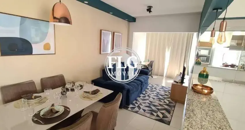 Apartamento com dois dormitórios, sala dois ambientes, sacada, banheiro, cozinha, área de serviço e uma vaga coberta e fixa. .