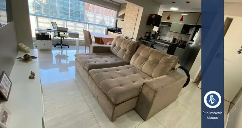 Apartamento no Tatuapé, 80m², 2 dormitórios com armários sendo todos suítes, sala apra dois ambientes com varanda integrada com churrasqueira, lavabo, cozinha americana com armários planejados, área de serviço e 2 vagas de garagem.