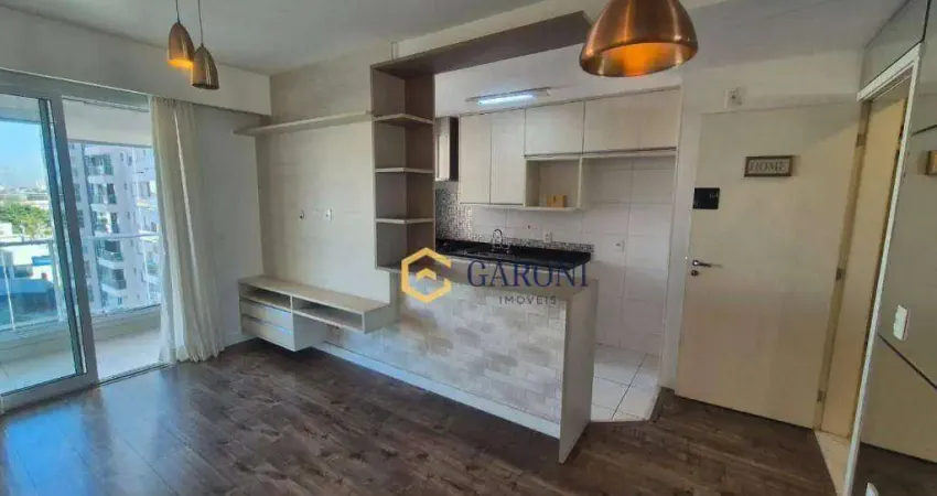 Apartamento de 55 m², com 2 quartos, 1 banheiro, sala para dois ambientes, varanda envidraçada e cozinha americana, forno embutido, cooktop e coifa. O imóvel conta com móveis planejados em todos os ambientes, ar-condicionado, além de 1 vaga de garagem.