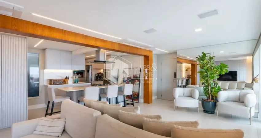 O living é espaçoso, com ambientes integrados e excelente aproveitamento de luz natural. A cozinha em conceito aberto possui acabamentos de alto padrão e é equipada com micro-ondas, forno elétrico, fogão e coifa, unindo funcionalidade e design contemporâneo. A sala de jantar conta com mesa e cadeiras, criando um ambiente acolhedor e ideal para momentos especiais. Localizado em andar alto, o apartamento proporciona uma vista agradável e uma atmosfera elegante e aconchegante.