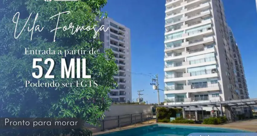 APARTAMENTO 2 DORM COM VARANDA INTEGRADA E 1 VAGA À VENDA NA VILA FORMOSA ZONA LESTE Entrada a partir de R$ 52.000,00, podendo ser FGTS, o restante financiado de acordo à renda. Valor total de R$ 520.000,(link removido) com aproximadamente 45m², muito bem distribuídos em 2 dormitórios, sala com varanda integrada e vista livre, cozinha, banheiro e 1 vaga de garagem.O imóvel conta com móveis planejados na sala, cozinha e banheiro, persiana central motorizada, porcelanato em todos os ambientes e fechadura digital, oferecendo modernidade, conforto e praticidade no dia a (link removido)ínio com área de lazer completa, incluindo:
