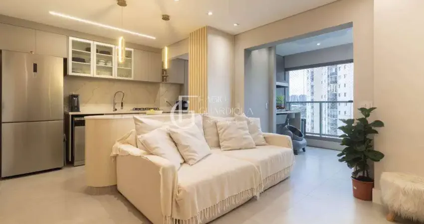 Destaques do imóvel: • 2 dormitórios, sendo 1 suíte • varanda gourmet envidraçada • sala ampla integrada • armários planejados e marcenaria sob medida • ar-condicionado na sala, dormitório e suíte • piso porcelanato Portobello nas áreas sociais • 1 vaga de garagem coberta e demarcada.