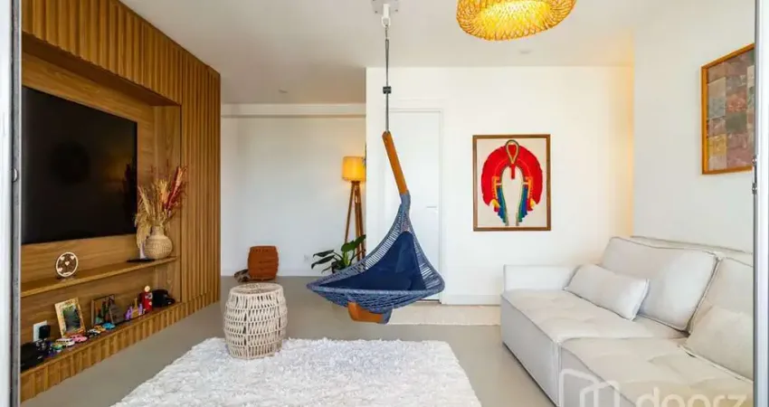 Living espaçoso com varanda gourmet perfeito para relaxar ou receber.