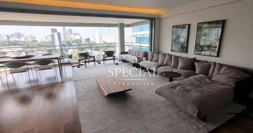 Apartamento de 131 m² com projeto contemporâneo que valoriza integração, luminosidade natural e conforto urbano. O living amplo é marcado por grandes aberturas de vidro, criando uma conexão fluida com a varanda gourmet e proporcionando excelente iluminação ao longo do dia. A integração entre estar, jantar e cozinha reforça a funcionalidade da planta e favorece o convívio, mantendo uma atmosfera moderna e acolhedora.