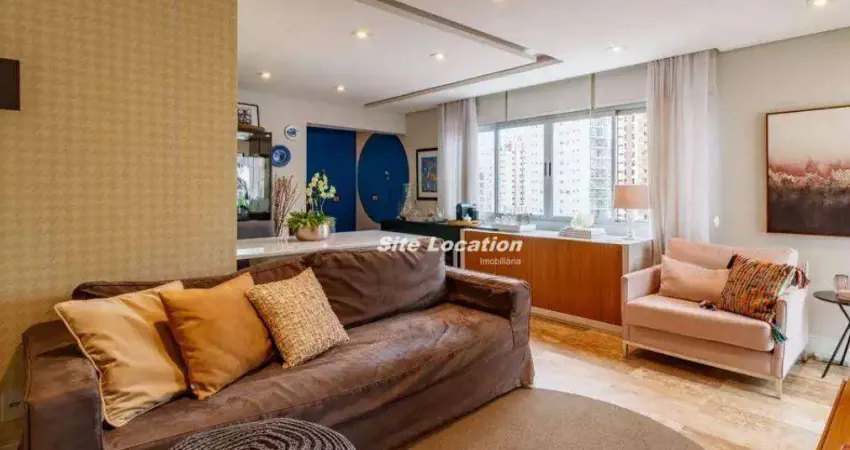 114874 Este apartamento de 100m² é uma verdadeira joia, oferecendo dois dormitórios, incluindo uma suíte master com um closet espaçoso e um escritório elegantemente reformado, ideal para os profissionais de hoje. A decoração é de alto padrão, com marcenaria planejada que maximiza o espaço e cria um ambiente acolhedor. O conforto é garantido durante todo o ano com ar-condicionado moderno e uma cozinha gourmet com ilha central, perfeita desfrutar suas refeições.