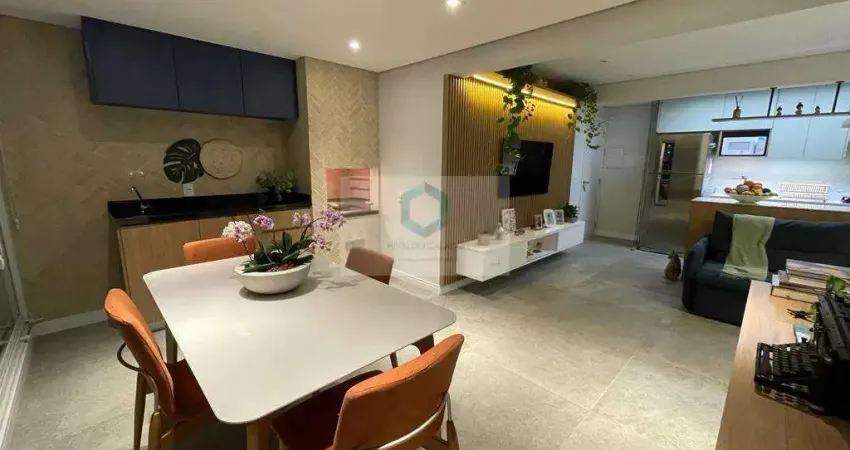 Excelente apartamento com dois dormitórios, sendo uma suíte, ar condicionado, varanda gourmet integrada, cozinha planejada, armários uma de garagem livre. Condomínio moderno e muito bem localizado, próximo ao comercio e com fácil acesso as principais vias do bairro.