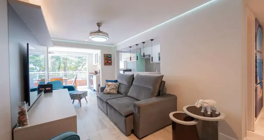 O imóvel possui 2 dormitórios, ambos suítes, além de lavabo para visitas. A cozinha é americana, integrada à sala de estar, criando um ambiente amplo e acolhedor, ideal para o dia a dia e para receber amigos. A sala é confortável e tem acesso à varanda já envidraçada.