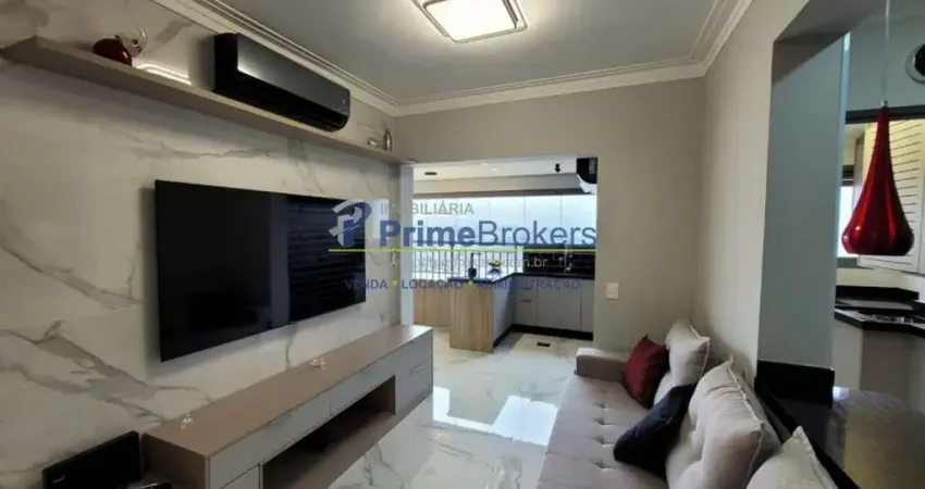 2 dormitórios sendo 1 suíte, 2 banheiros, 1 vaga de garagem fixa e livre, área útil de 77m², móveis planejados sob medida, ar condicionado central, piso porcelanato, vista panorâmica para a cidade, vista permanente, sacada, cozinha integrada, adega climatizada, espaço gourmet, churrasqueira, água quente, gás encanado, interfone, mobiliado