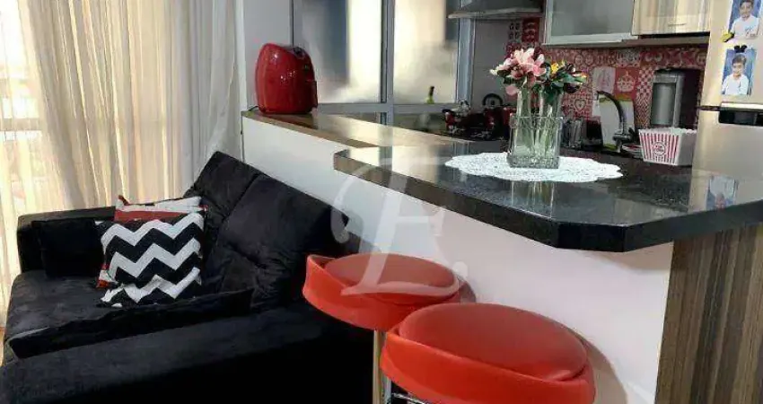 Apartamento com ambientes integrados e acabamentos de qualidade, contando com 2 dormitórios, sendo 1 suíte, master com box de vidro, armário planejado e espelho, cozinha com elegante balcão-armário, sala de jantar e sala de estar em um conceito aberto e moderno, banheiro com armário planejado e espelho, varanda ampla com fechamento em vidro, além de 1 vaga de garagem.