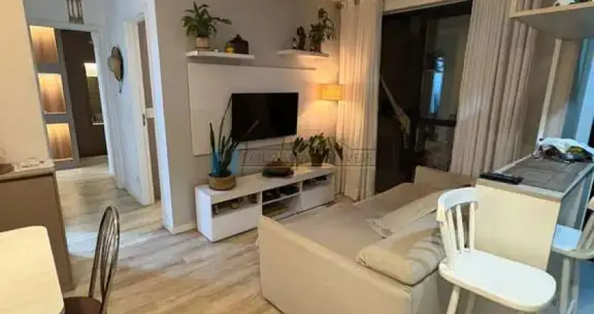 São 59m, varanda com churrasqueira a gás, 02 Dormitórios, sendo 01 suíte, banheiro social, sala 02 ambientes com cozinha integrada e área de serviço. 1 vaga de garagem