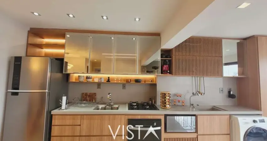 O apartamento encontra-se com piso em porcelanato em todos os ambientes, armários planejados na cozinha, área de serviço e banheiros. Metais Deca e Docol, fechamento das sacadas em vidro e cortina automatizada, proporcionando excelente aproveitamento de espaço e um design moderno e funcional. A sala é integrada à varanda, garantindo ótima iluminação natural e ventilação.