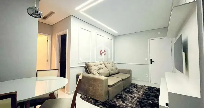 A sala é ampla, permitindo até dois ambientes, equipada com painel planejado, televisão, sofá, cortinas e mesa de jantar, integrada a uma bela varanda gourmet com churrasqueira e armários planejados, criando um espaço perfeito para receber. A cozinha é totalmente planejada e equipada com cooktop, coifa, forno, geladeira e micro-ondas, oferecendo funcionalidade no dia a dia. O apartamento conta com dois dormitórios, sendo uma suíte, ambos com armários planejados, ar-condicionado e televisão, além de banheiro social com fino acabamento e área de serviço privativa com armários planejados. Os banheiros são completos, bem decorados e com excelente padrão de acabamento.