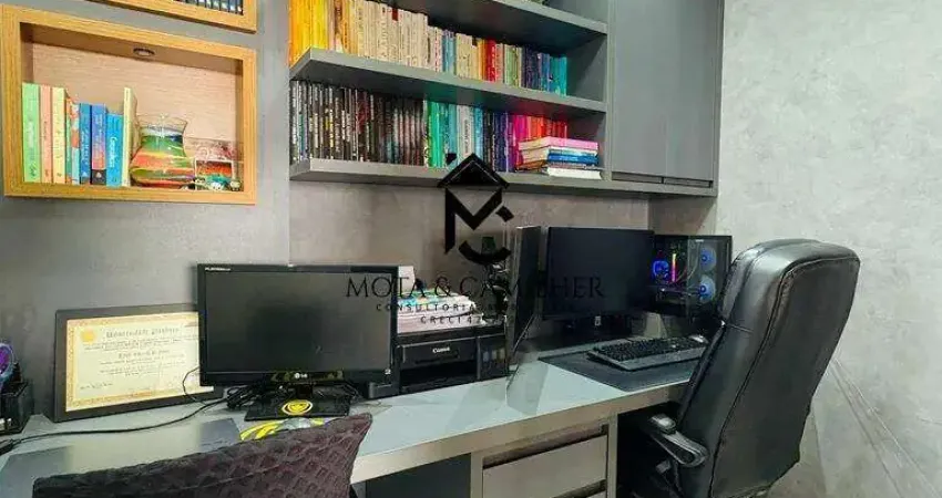 ? Apartamento de 82 m² com Sacada Gourmet e Lazer Completo ? Este apartamento foi pensado para quem busca modernidade e conforto em cada detalhe. Com 82 m², sua planta original de 3 dormitórios foi adaptada para oferecer 2 quartos e 1 escritório, ideal para o dia a dia ou home office. Ambientes modernos com: ? Ar-condicionado ? Piso porcelanato ? Teto rebaixado com iluminação em LED ? Armários planejados na cozinha, dormitórios e banheiro ? Banheiro com box de vidro ? Lavanderia funcional ? Sacada gourmet, perfeita para momentos de lazer O edifício garante praticidade e bem-estar com infraestrutura completa: ? Elevador ? Brinquedoteca ? Piscina ? Quadra esportiva ? Salão de festas com churrasqueira ? Academia Um imóvel moderno, bem distribuído e em um condomínio que oferece lazer para toda a família. Agende agora mesmo sua visita!