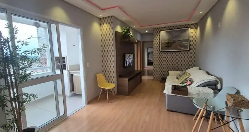 Apê dividido entre os ambientes: Sala de Estar/TV; Varanda Gourmet; 02 Quartos sendo uma suíte; Banheiro social; Cozinha; Área de serviço;