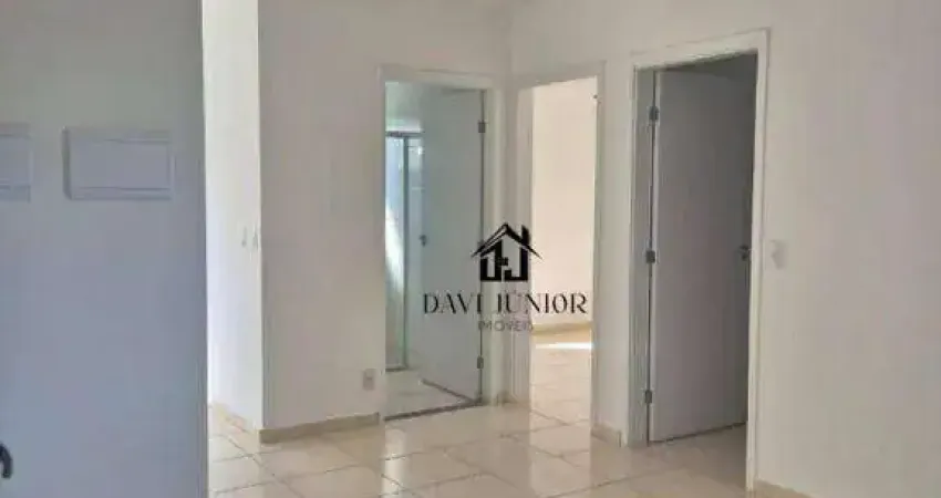 apartamento com 43 m², sala, dois dormitóris, cozinha com gabinete, banheiro com box em vidro temperado, uma vaga de garagem descoberta.