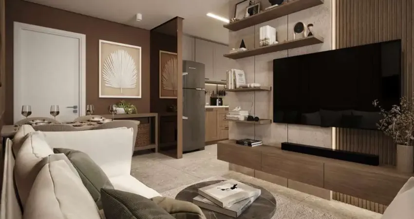 Os apartamentos oferecem uma distribuição inteligente, com sala de estar/jantar, 2 quartos, banheiro social, cozinha, área de serviço e opção de varanda ou garden no térreo, trazendo mais funcionalidade para o dia a dia.