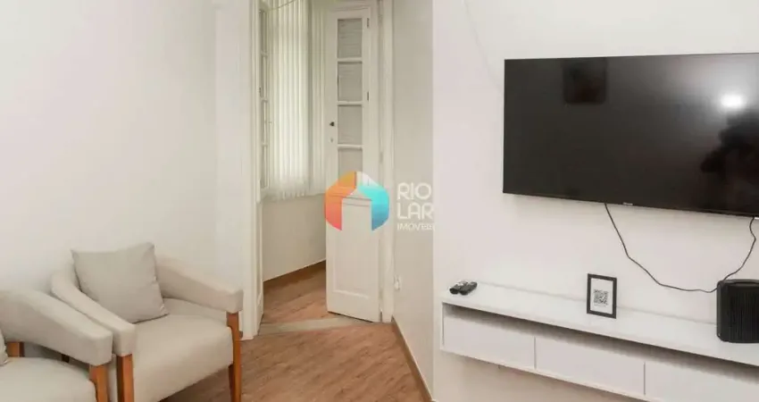 Rio Lar Imóveis apresenta este excelente imóvel com porteira fechada localizado no bairro de Copacabana. Localização privilegiada, na quadra da praia, próximo ao comércio local, bem como do Shopping Rio Sul. Possui metragem de 55 m², contando com uma sala bem aconchegante, 2 quartos, 2 banheiros, um deles com Box Blindex, saleta gourmet, varanda, closet, televisão 50 polegadas, rack, geladeira, 2 aparelhos de ar condicionado de 24.000 e 12.000 BTUs, área de serviço e uma excelente cozinha americana.