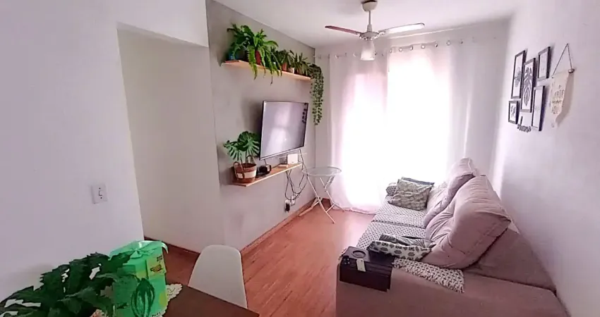 Apartamento no 5° andar (sem elevador), com 45 m² e sol da manhã. Possui 2 quartos, sala, varanda, cozinha e área de serviço, bem distribuídos.