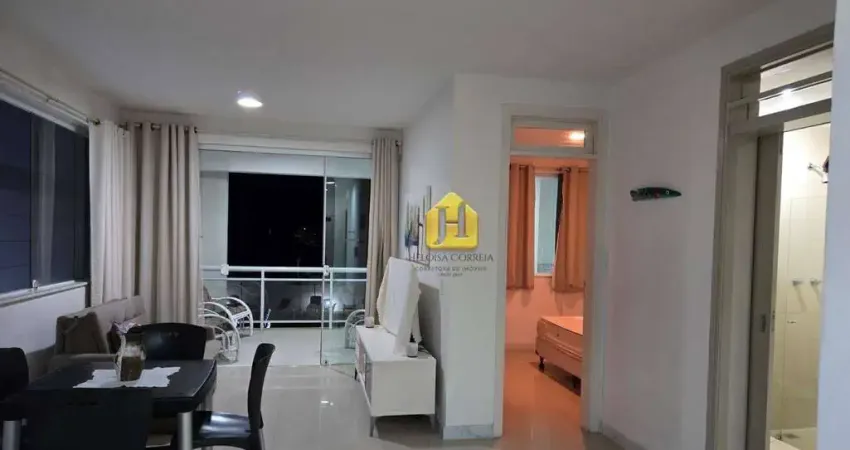 Apartamento mobiliado com 60 m² 2/4, varanda, sala, quarto, cozinha americana e banheiro com porta que dá acesso aos dois quartos e á uso comum.