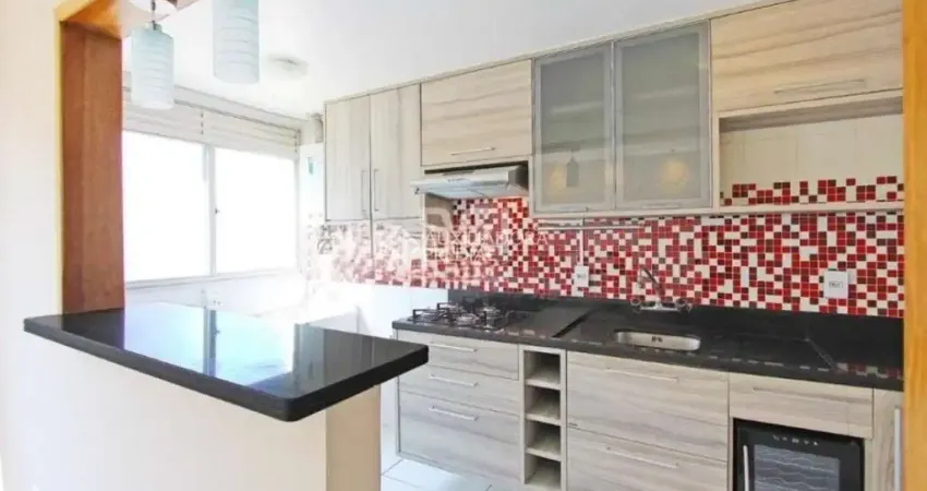 Ótimo apartamento de 2 dormitórios, banho social com box, cozinha americana com bancada, bem iluminado e ensolarado, decorado, fica semi mobiliado. Condomínio conta com portaria 24 horas, salão de festas, elevador, e playground.