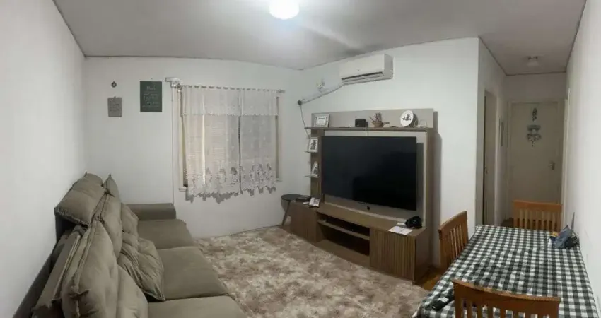 Apartamento de 2 dormitórios, living, cozinha, área de serviço e banheiro social.