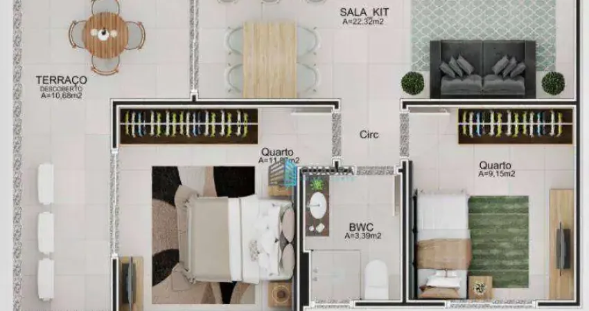 Apartamento com Dois Dormitórios, Bwc Social, Estar/Jantar,