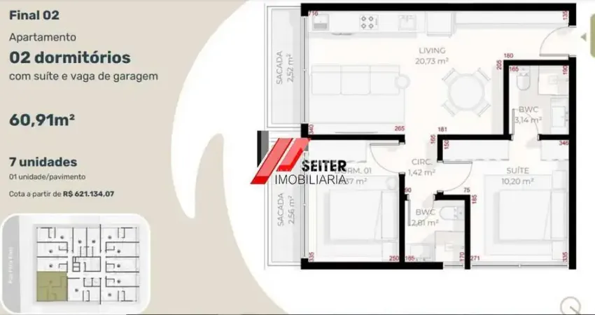 O empreendimento oferece infraestrutura completa, incluindo rooftop com piscina aquecida, sauna, espaço gourmet, academia, coworking e mini mercado, proporcionando qualidade de vida e praticidade. Com modelo de investimento a preço de custo e alto potencial de valorização, este apartamento é ideal para morar ou investir. Previsão de entrega para julho de 2027.