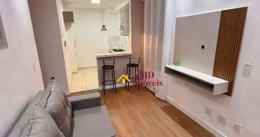 Apto porteira fechada. Dois quartos com vista livre, banheiro completo, cozinha americana com armários MDF estilo Provençal, cooktop, pia com torneira gourmet com saida para filtro. bancada inteiriça com tanque embutido. Sala com revestimento em papel de parede, sanca em gesso, com iluminação embutida. Apto recém reformado, pintura nova e moveis novos. Piso laminado de madeira em td apto. Portaria presencial com reconhecimento facial.