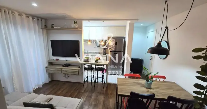 Com 65,00 m² de área útil, andar alto, vista livre, 2 quartos (sendo 1 suíte), sala para 2 ambientes integrada ao terraço gourmet com churrasqueira, cozinha padrão americano com móveis planejados, banheiro social, 2 vagas de garagem cobertas.