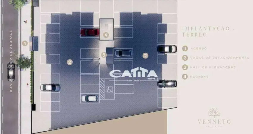 Apartamentos de 41m² com 2 Dormitórios; Sala de estar e jantar; Cozinha; área de serviço e Banheiro. Com 1 Vaga de Garagem.