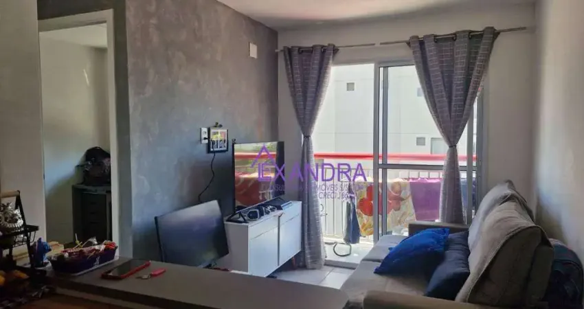 Apartamento com dois dormitórios com armários embutidos, sala para dois ambientes, sacada, cozinha planejada, banheiro social e área de serviço.