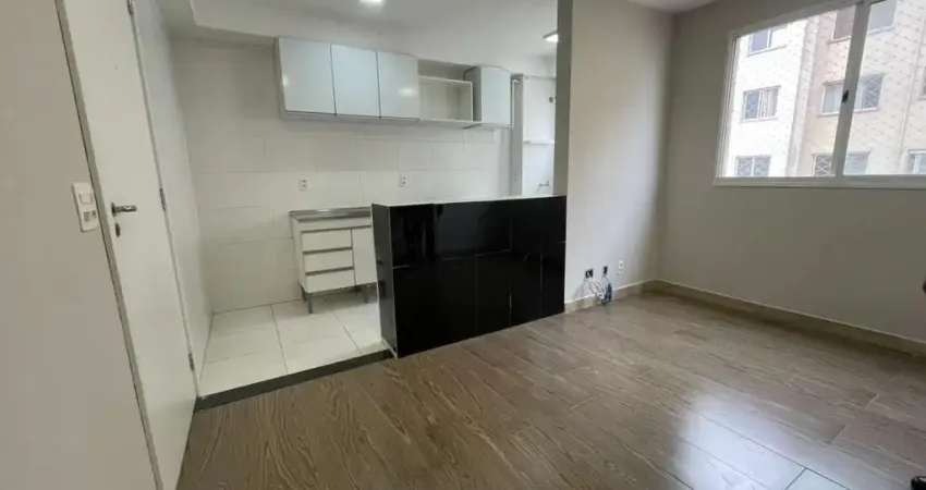 2 dormitórios, cozinha com planejados, balcão americano integrado à sala, área de serviço e 1 banheiro social.
