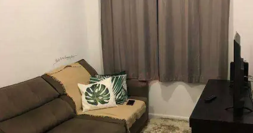 Apartamento com dois dormitórios, um banheiro, sala e cozinha integrada a área de serviço.