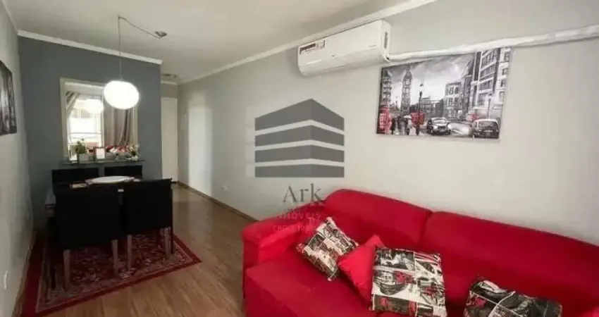 O apartamento tem sala de estar e jantar, ar condicionado, passa pratos da sala para a cozinha, cozinha e área de serviço, varanda, 2 quartos, 1 banheiro social e 1 vaga de garagem.