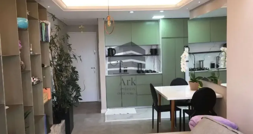 Lindo apartamento em andar alto com 2 dormitórios, sendo 1 suíte com 3° reversível, ampla sala para 2 ambientes com moveis planejados, sacada fechada, cozinha americana com móveis planejados. Ar condicionado na suíte e sala. Todos os ambientes em porcelanato. Apto possui 1 vaga de garagem e depósito.