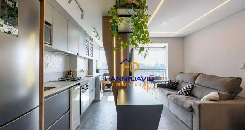 Estamos na Vila Mariana, a poucas quadras do metrô Ana Rosa. Nono andar, sol da manhã, e essa baita vista. São 47 m² muito bem resolvidos e com ar condicionado.