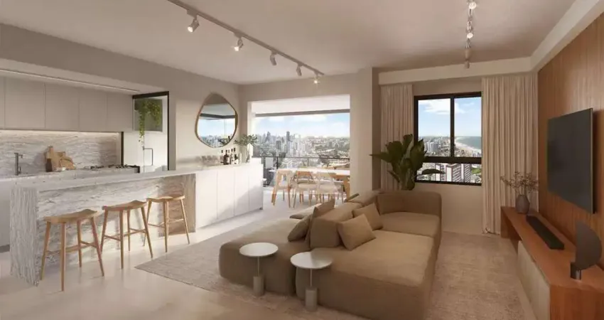 O empreendimento dispõe de lazer completo, incluindo piscina com borda infinita, academia com vista para o mar, coworking, salões de festas, área gourmet, mini market, espaços pet, quadra recreativa e áreas infantis, todas equipadas e mobiliadas.