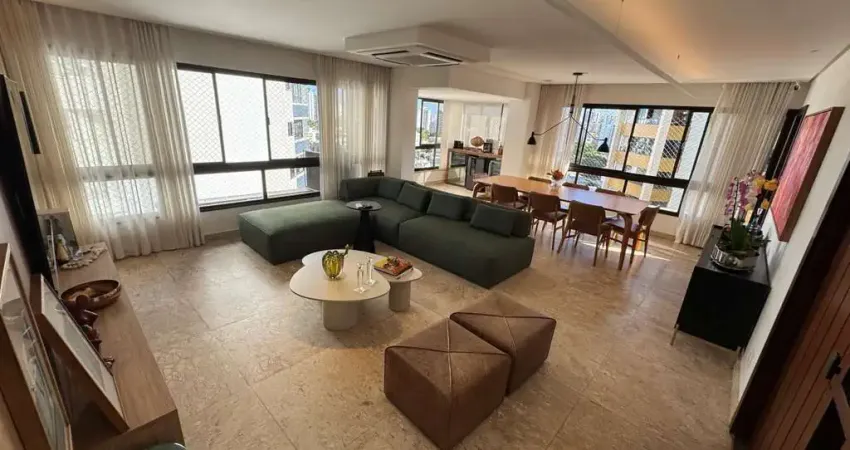 Amplo e elegante apartamento com 181,75m², totalmente mobiliado e reformado, pronto para morar! São 3 suítes, sendo 2 com closet, além de dependência completa, despensa e móveis planejados em todos os cômodos.