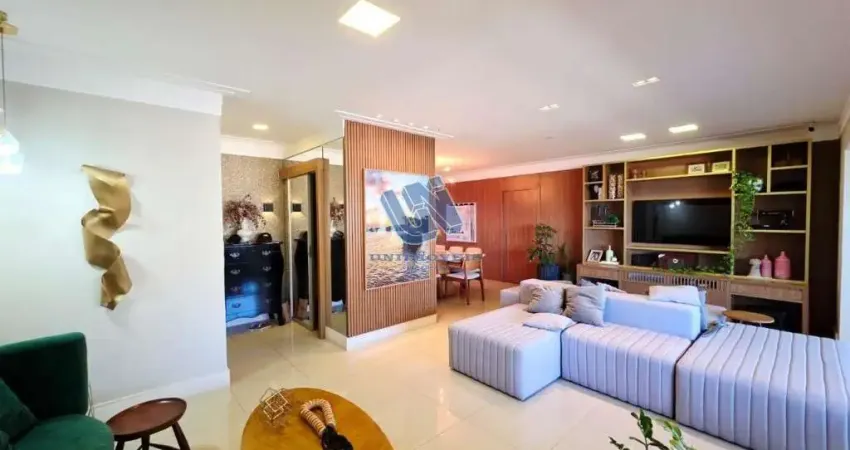Apartamento 4 suítes, sendo transformado em 3 suítes, com a suíte máster com um super closet, nascente, vista mar, sala ampla, 2 varandas, sendo a principal gourmet, cozinha, área de serviço e dependência completa. Aquecimento dos chuveiros com energia solar, Split nos quartos, piso porcelanato e armários planejados em todos os cômodos, 195m2, 3 vagas de garagem;