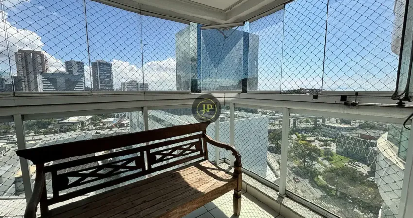 Apartamento montado com 03 quartos sendo 2 suítes com armários, sala ampla para 2 ambientes, varanda ampla com fechamento de vidro, banheiro social com box de vidro, armário e espelho, cozinha montada com armários sobre e sob a pia, área de serviço, piso em cerâmica.
