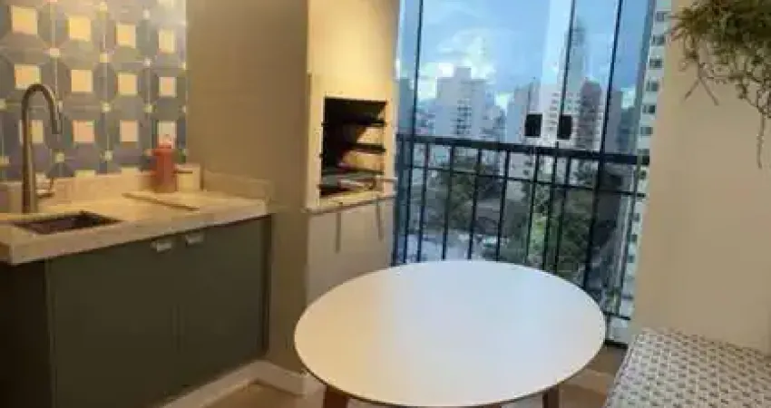 Cozinha equipada com fogão por indução, forno embutido, micro-ondas, geladeira side by side, painel de TV e cortinas planejadas. Área de serviço separada. Banheiro social com armários, box Blindex e ducha. 1 vaga de garagem.