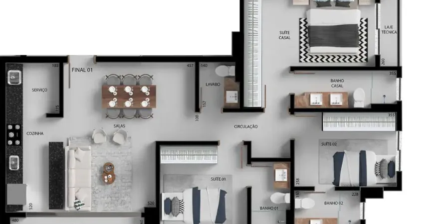 3 suítes + lavabo