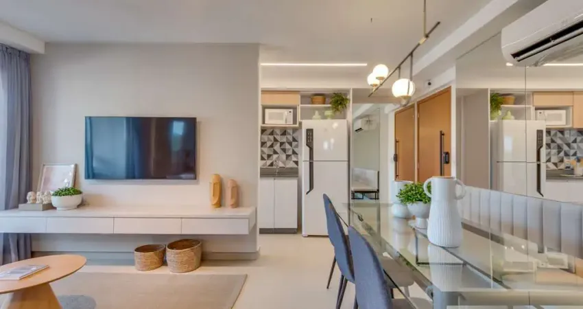 microondas. O apartamento é mobiliado e possui um espaço destinado a home