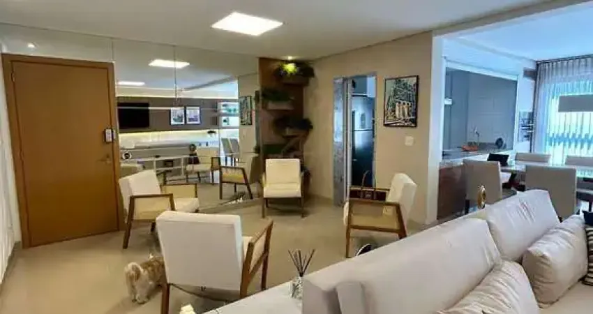 Apartamento mobiliado no Setor Marista, com 122 m. Apartamento conta com 3 suítes repletas em armários, além de lavabo social. Sala três ambientes, cozinha separada com cortina elétrica para integração e churrasqueira a gás. Apartamento om 2 vagas de garagem individual, andar alto e poente. Condomínio completo com academia, churrasqueira, salão de festa, 2 portarias, piscina, etc.