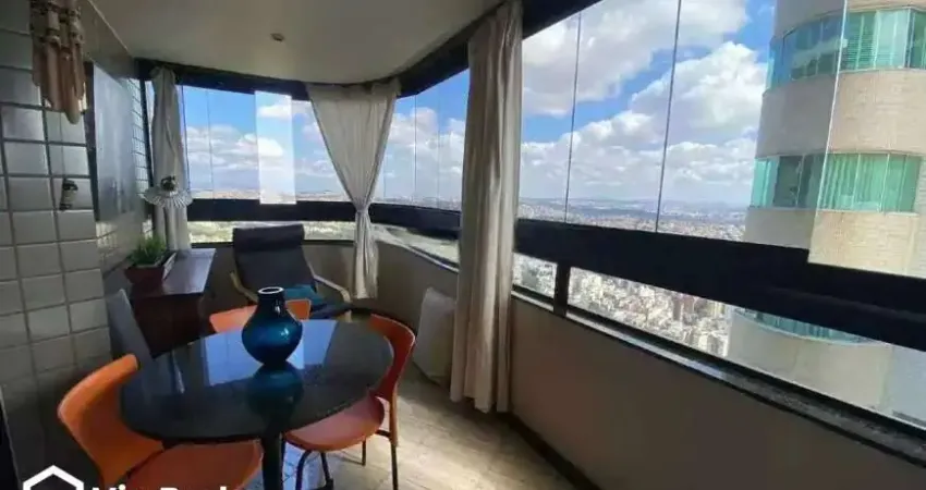 Sala espaçosa para 2 ambientes, integrada à varanda fechada em blindex, com uma das mais belas vistas do Buritis