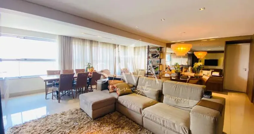 Ambiente pronto para morar com iluminação natural de qualidade e planejamento arquitetônico de alto padrão. O teto rebaixado traz elegância e acolhimento, proporcionando um ambiente ideal para você e sua família. Com 141m² de área interna, este apartamento é dividido em 01 sala para três ambientes, sala de jantar, cozinha, área de serviço. 03 quartos, sendo todos suítes e um com banheira, 04 banheiros com box instalado, lavabo e closet para uma acomodação mais adequada. DCE para os colaboradores da residência. Agende sua visita!