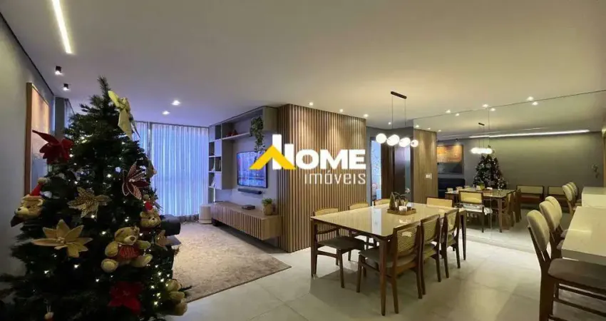 Alto padrão de acabamento com pisos em porcelanato nas áreas sociais, vinílico nos quartos, projeto luminotécnico, rebaixamento do teto em gesso, painel de TV, painel ripado, ar-condicionado em todos os quartos, bancada da cozinha e banheiros com mármore calacata, bancada da área externa e área de serviço em granito, armários planejados em todos ambientes, janelas com veneziana e box nos banheiros e aquecedor.