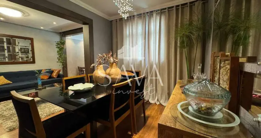 Apartamento conceituado, com estética planejada e integração bem resolvida entre os ambientes. A sala integra os espaços de estar e jantar, com acesso direto à varanda, jogo de iluminação em LED e ar condicionado instalado. O piso em laminado escuro reforça a proposta visual do imóvel.